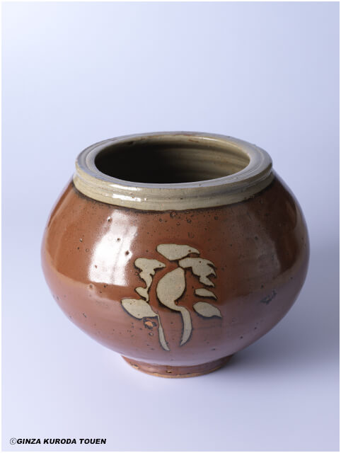 柿釉抜絵壺