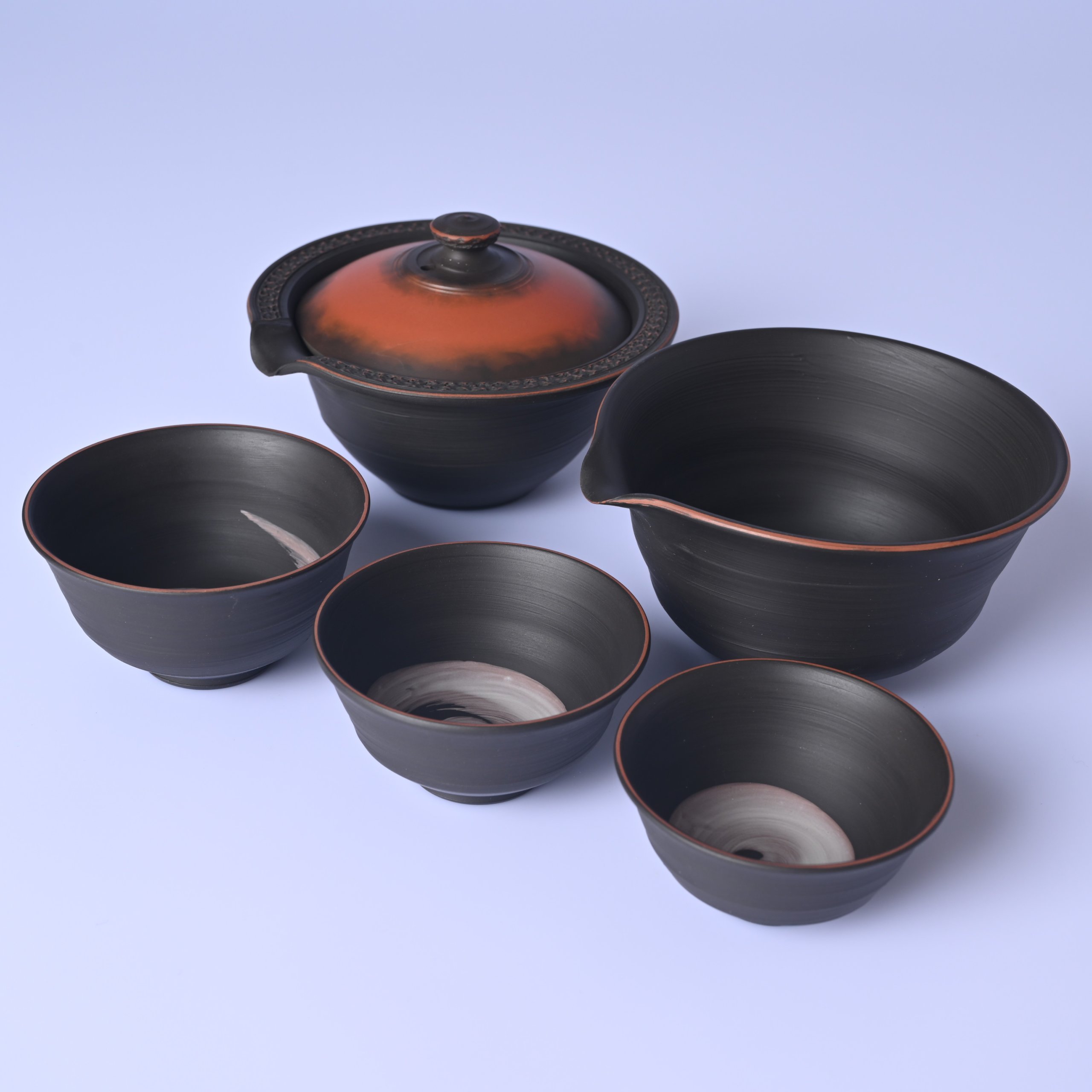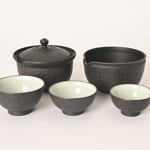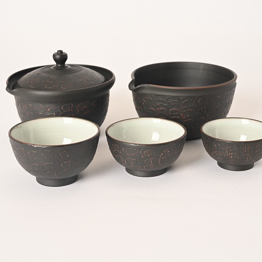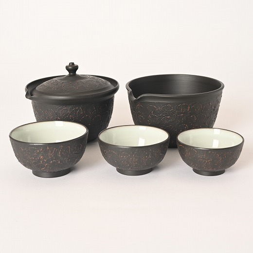 村越風月 研ぎ黒組込茶器