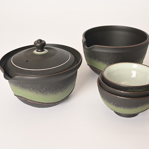 鯉江 廣 緑彩波 組込茶器