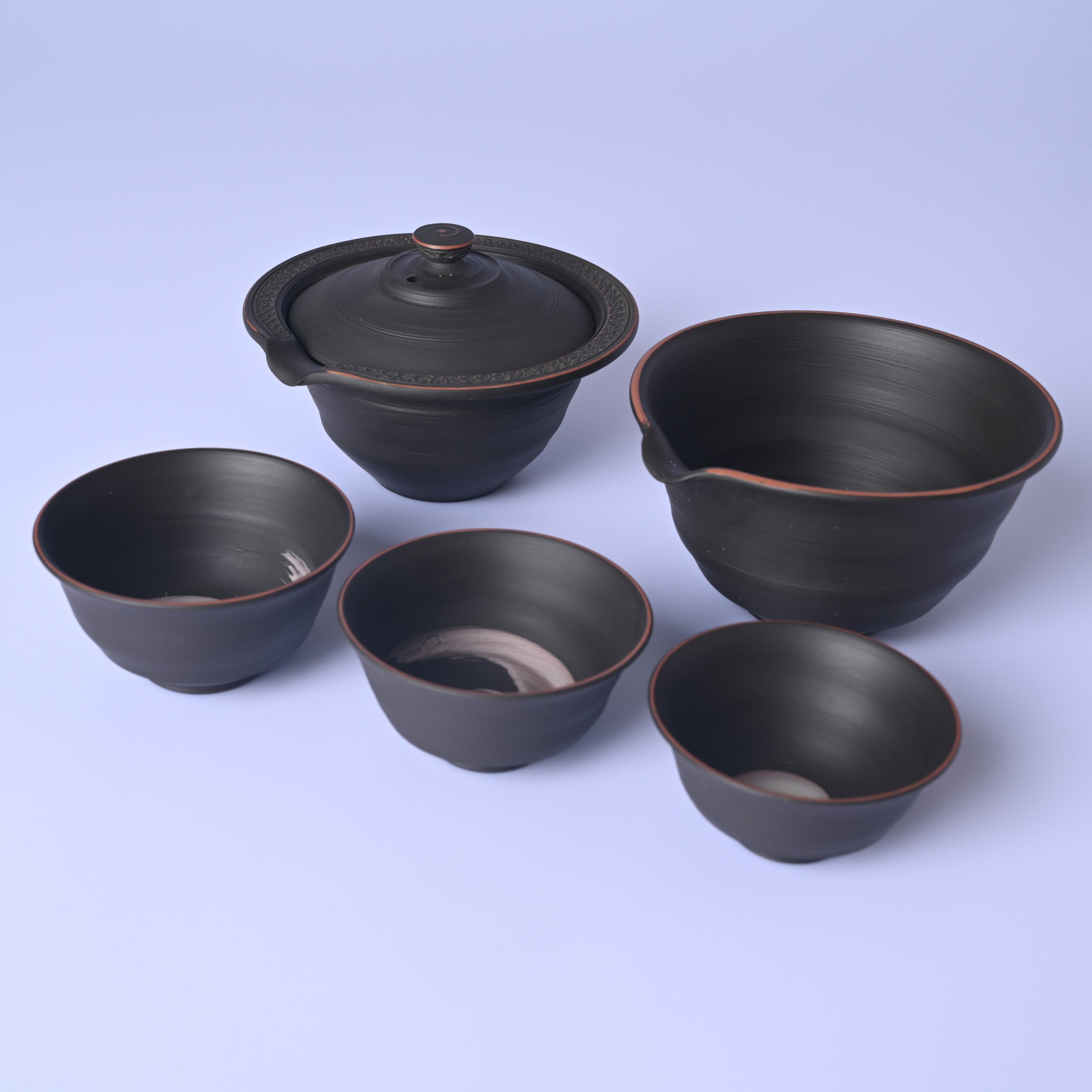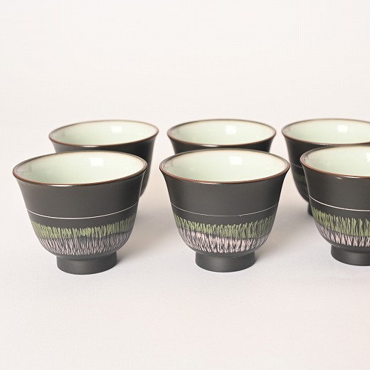 村越風月 研ぎ黒煎茶碗 六客組