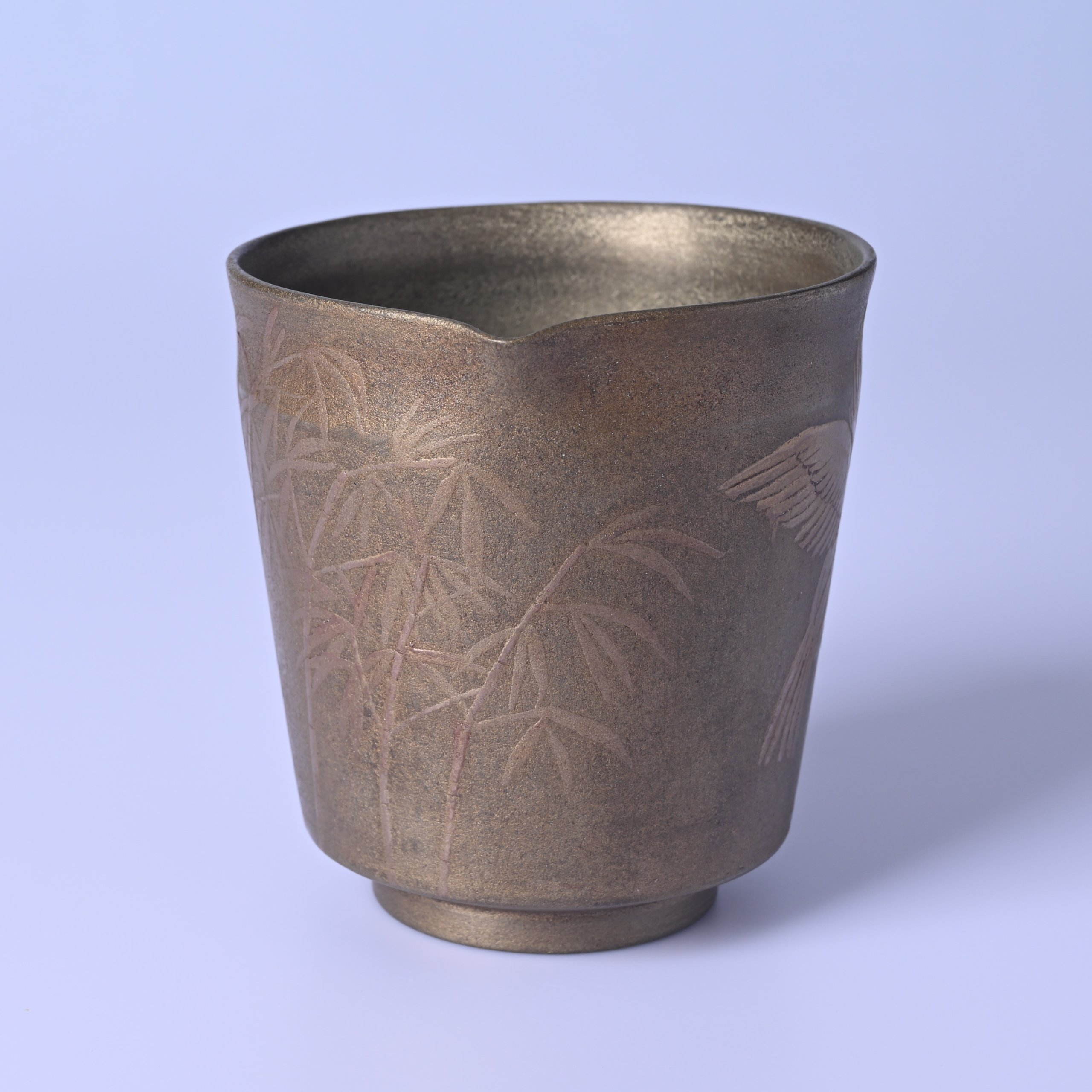 菱田賢治 雀竹林図蒔絵陶漆片口 [hk01]