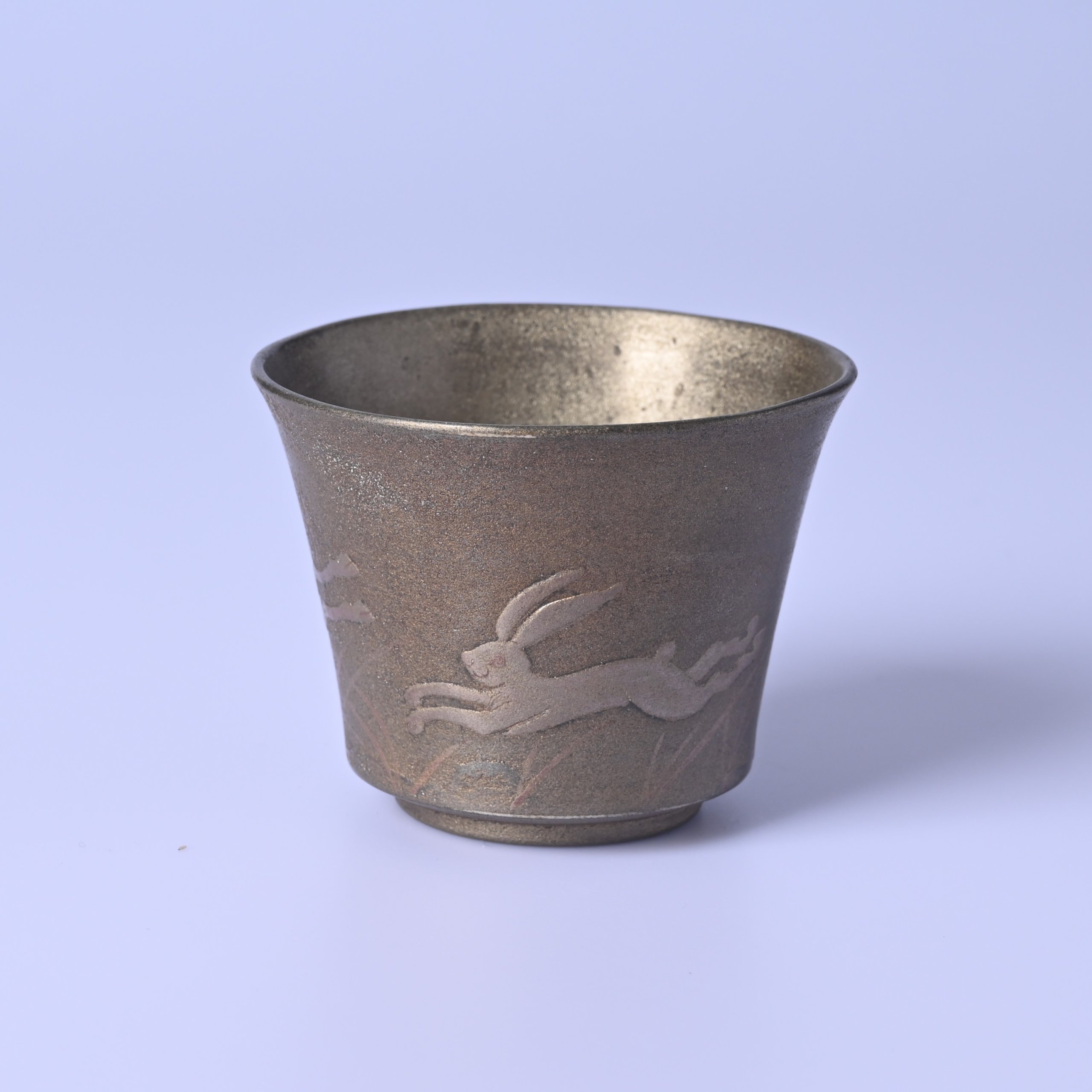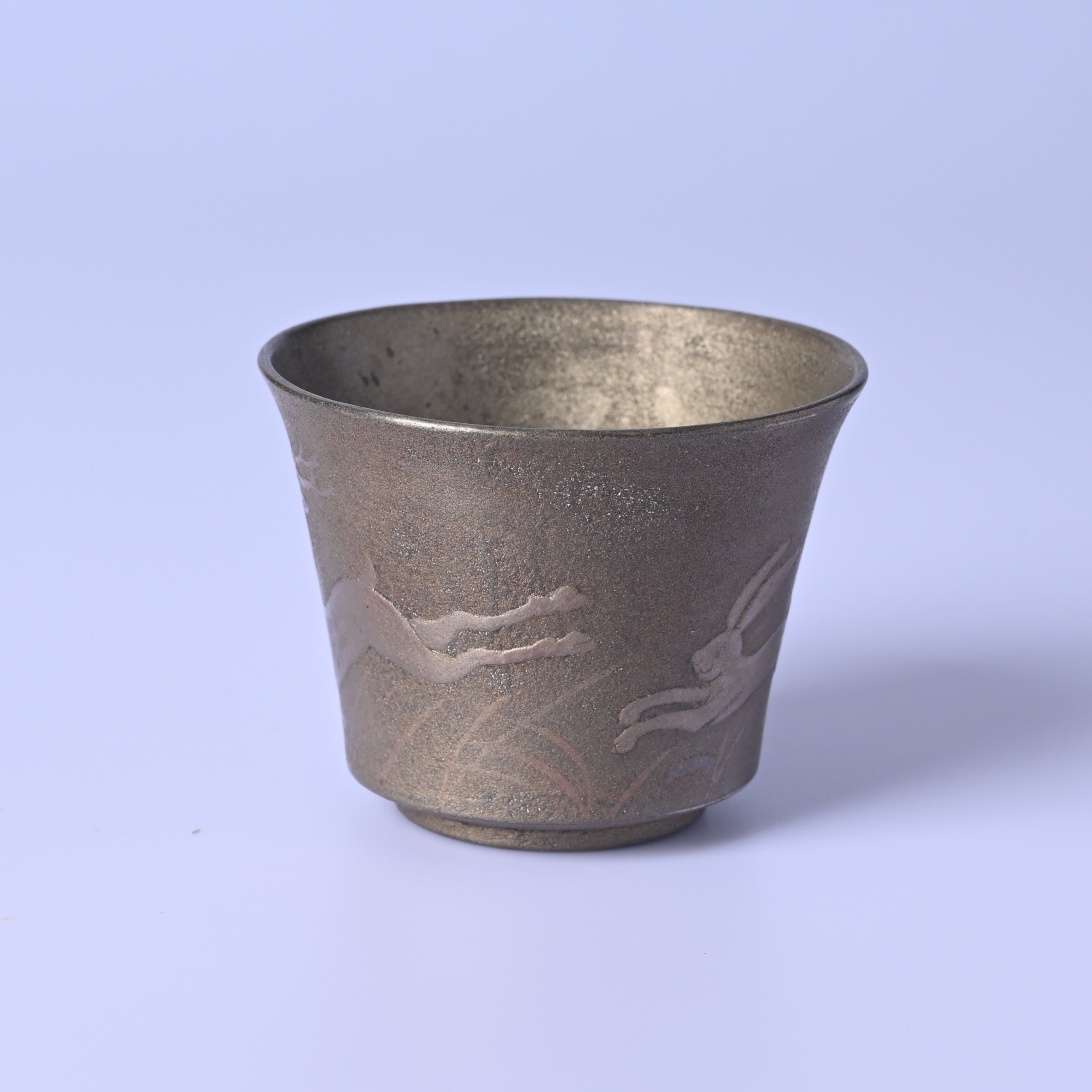 菱田賢治 鹿兎鳥図陶漆酒杯 [hk16]