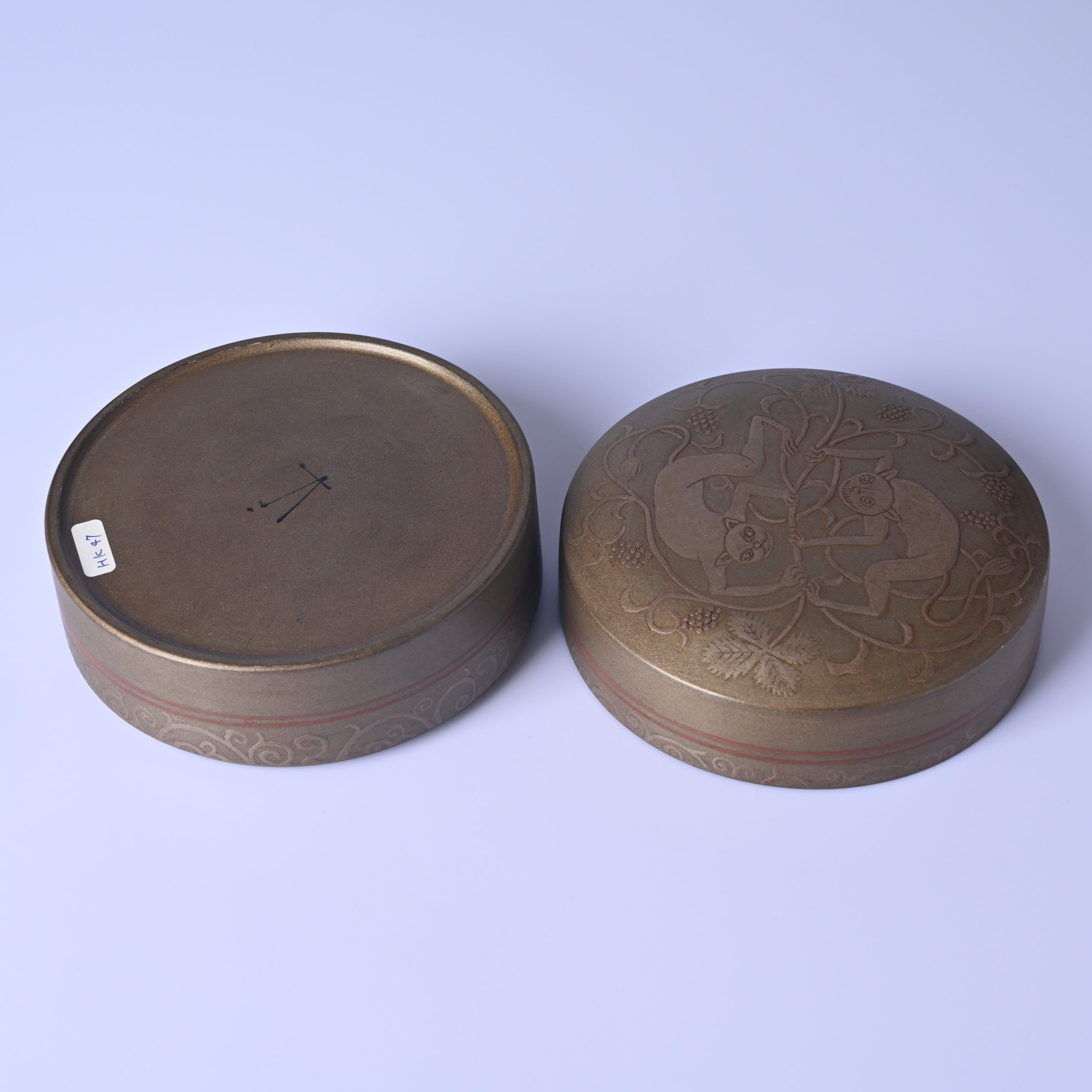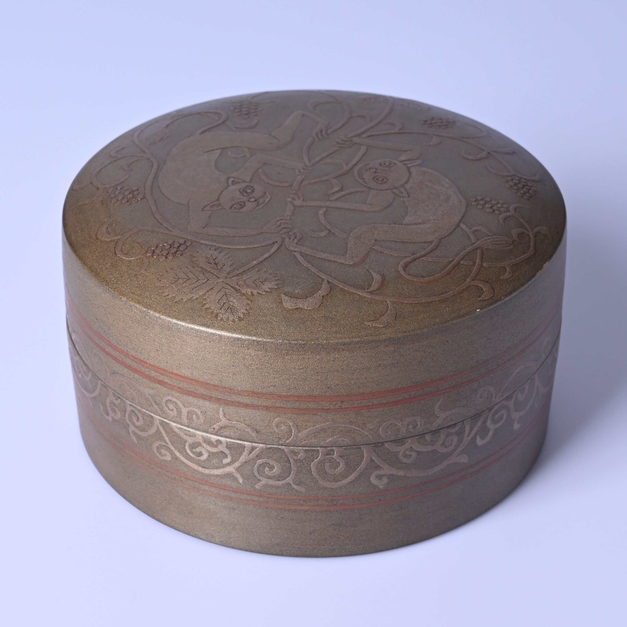 菱田賢治 双獣唐草紋陶漆筥 [hk47]