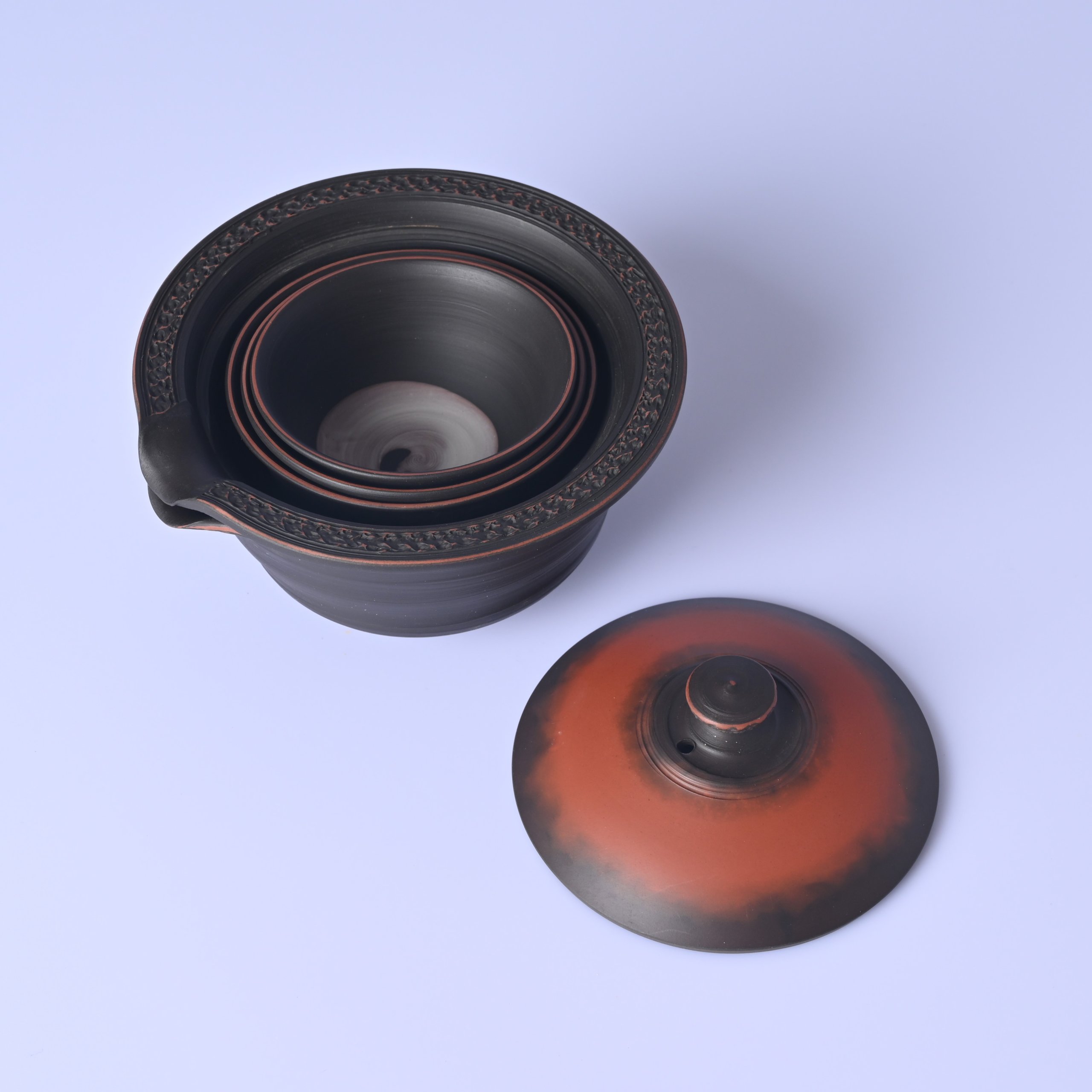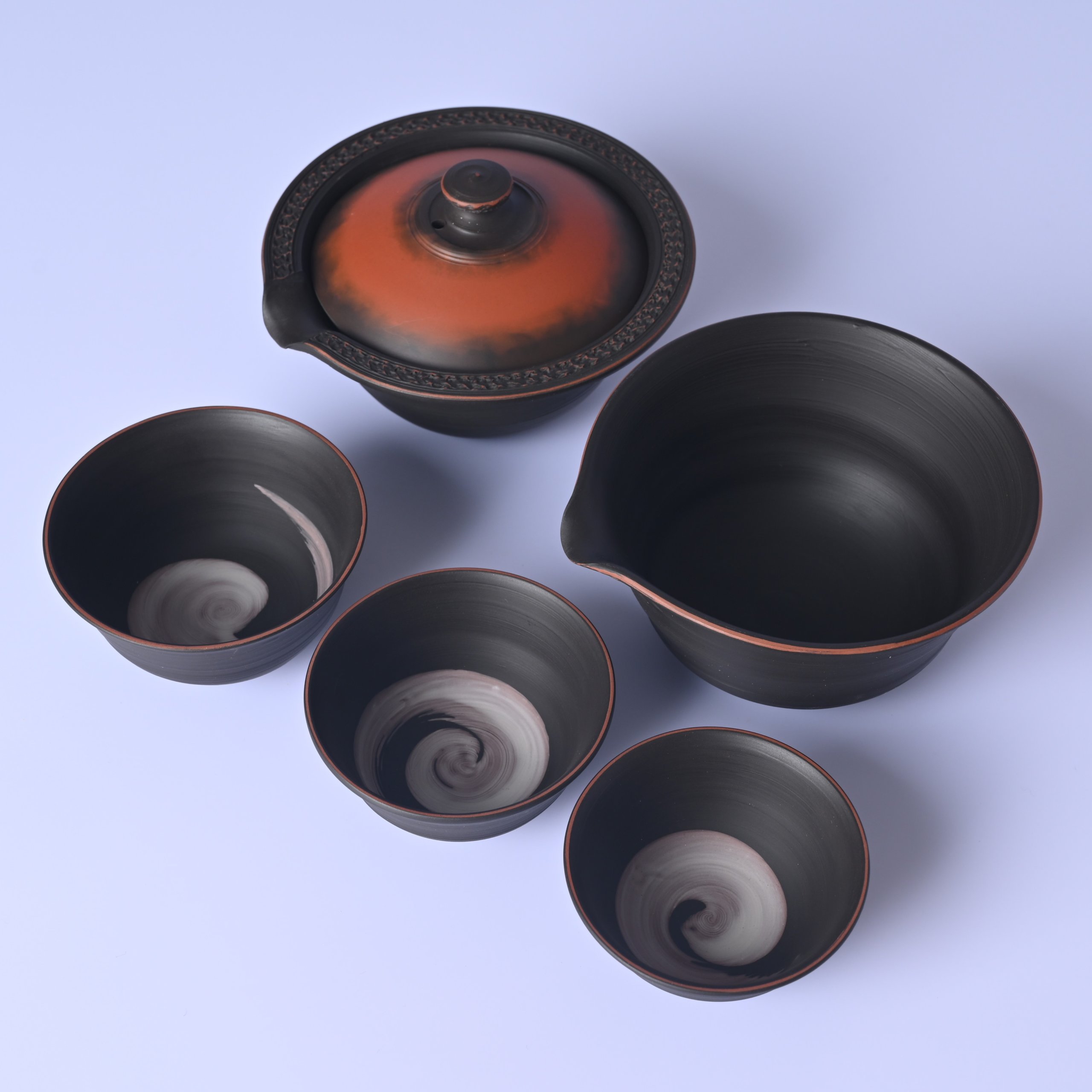 村越風月 研ぎ黒窯変組込茶器 [mf47]
