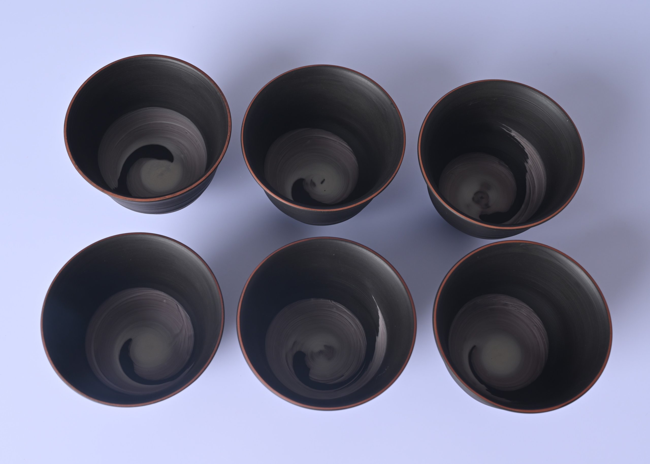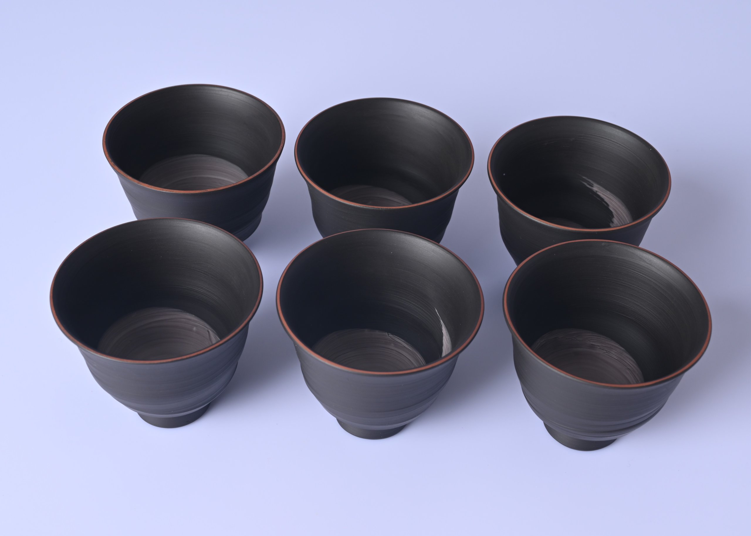 村越風月 研ぎ黒煎茶碗 六客組 [mf49]