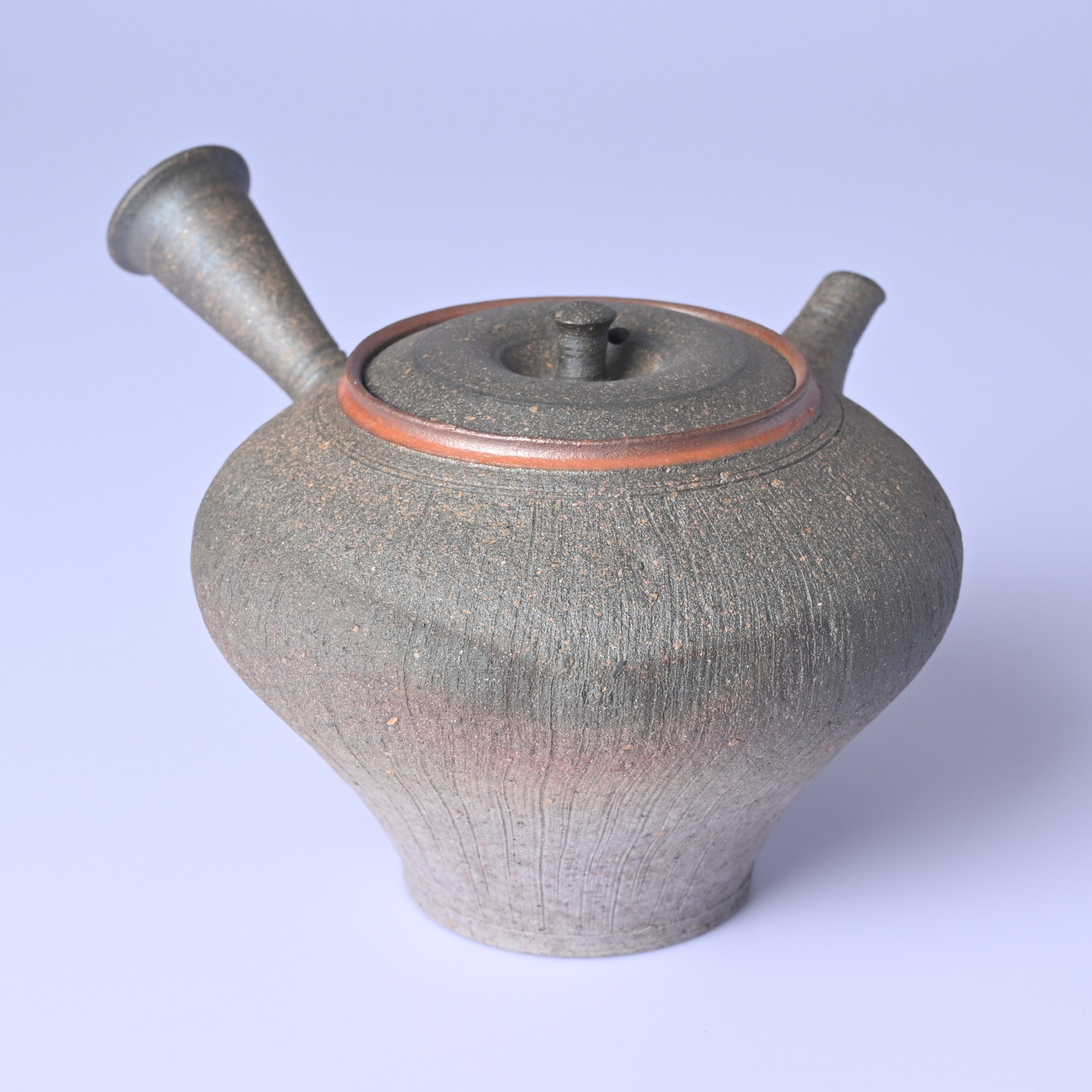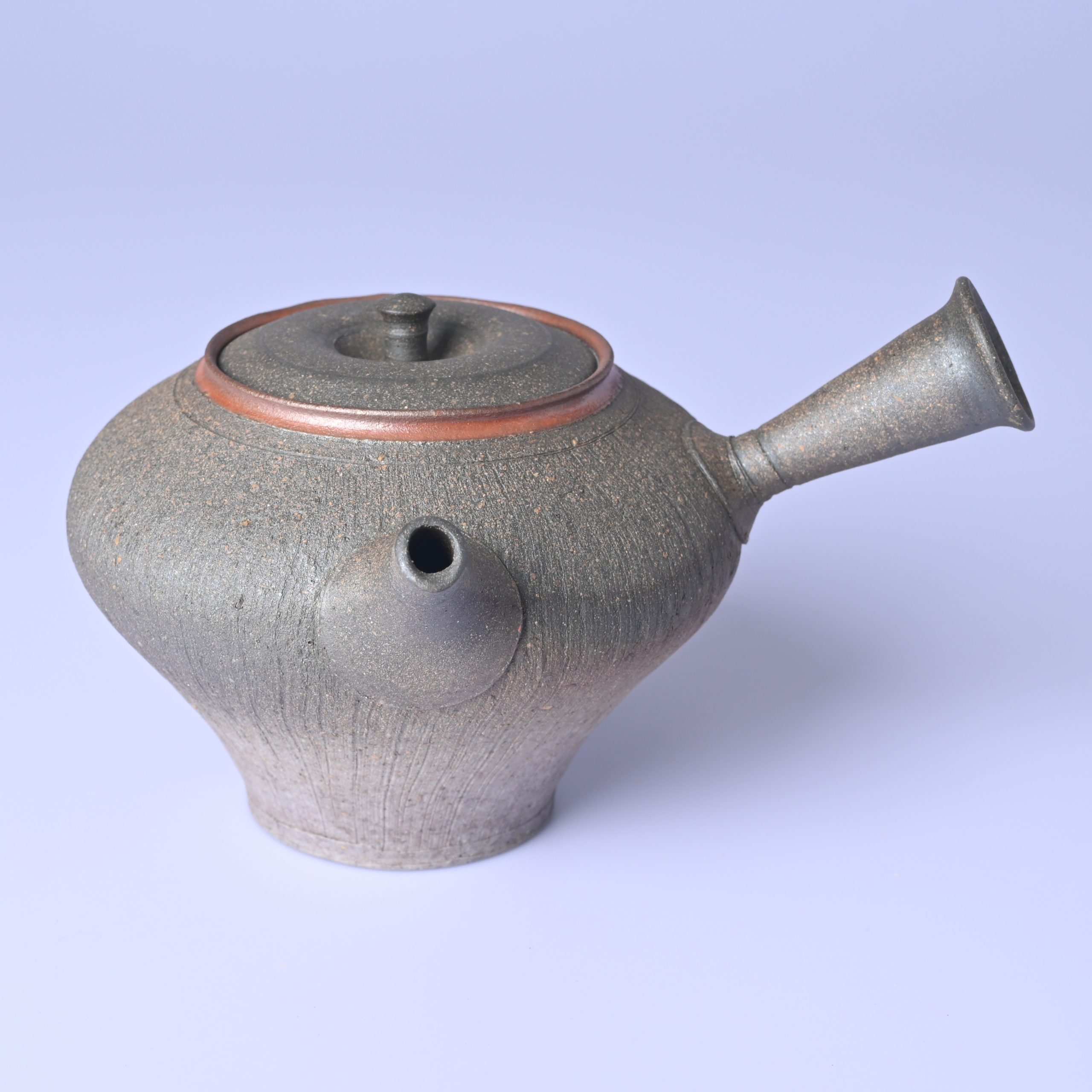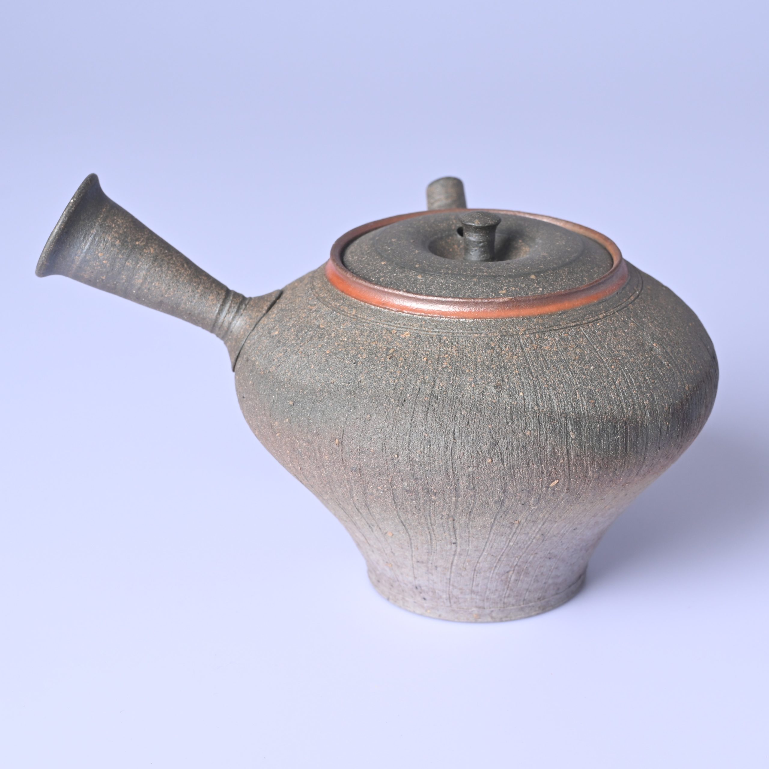 水野陽景 窯変焼〆線紋茶注 [my52]