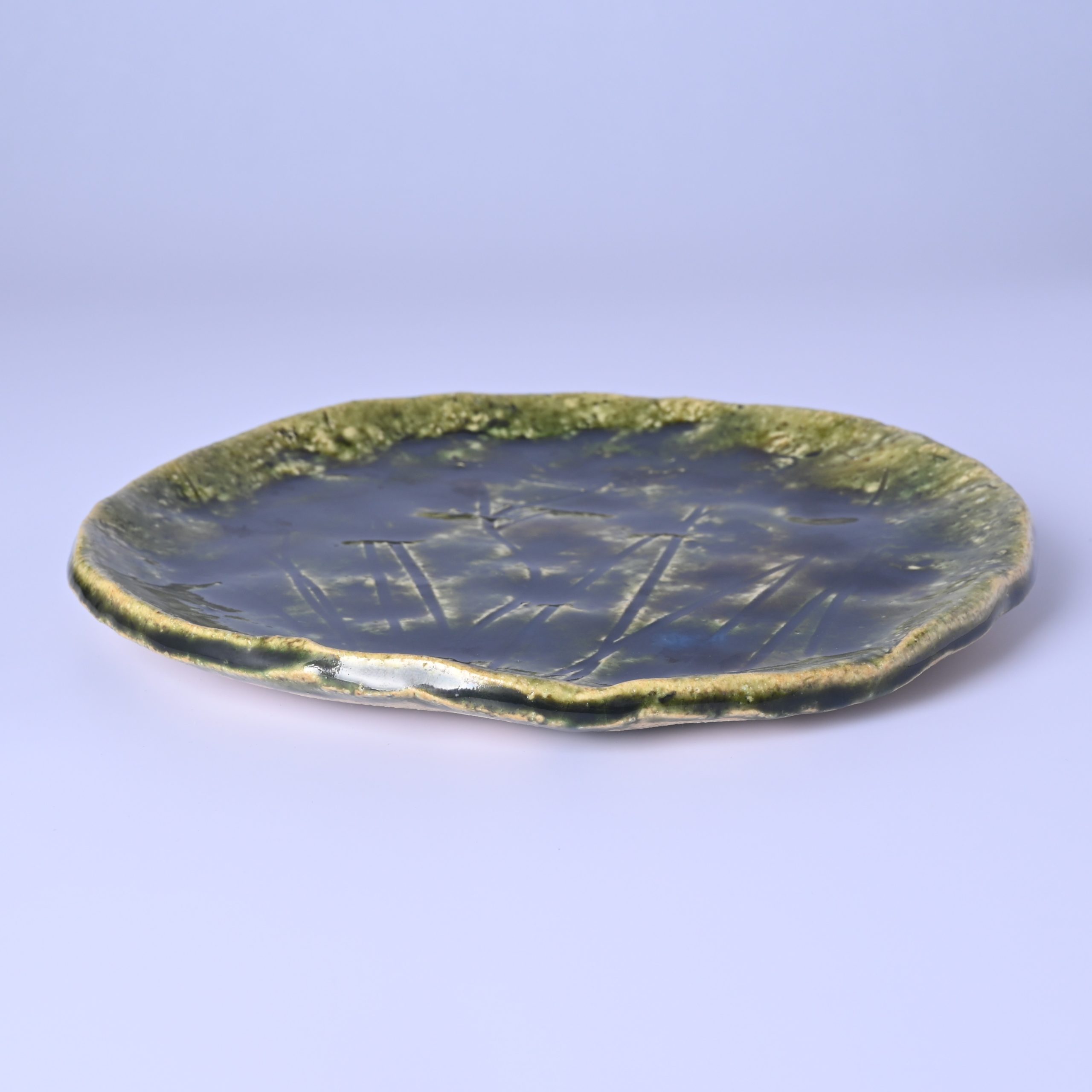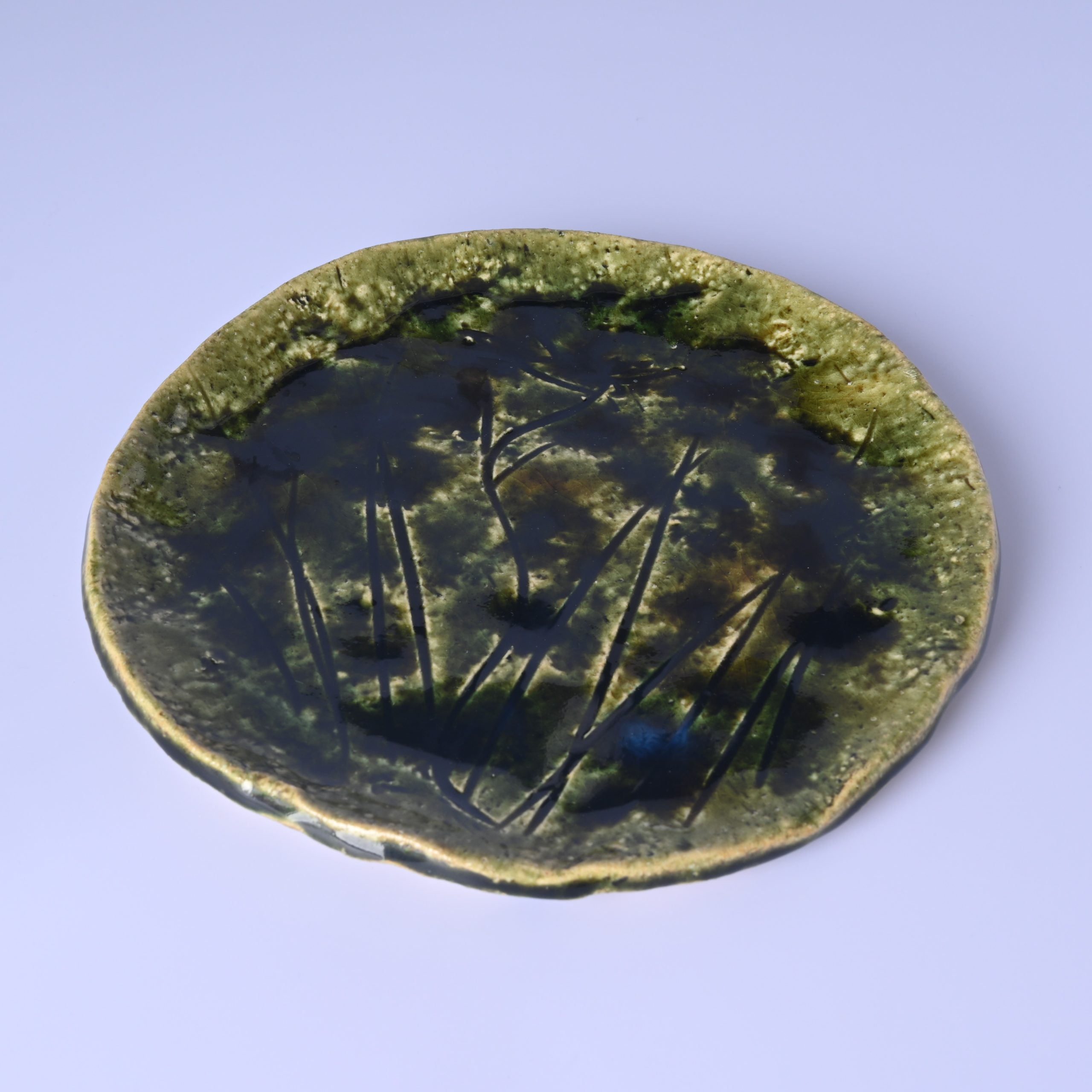 山口真人 織部菖蒲文丸皿 [ym039]