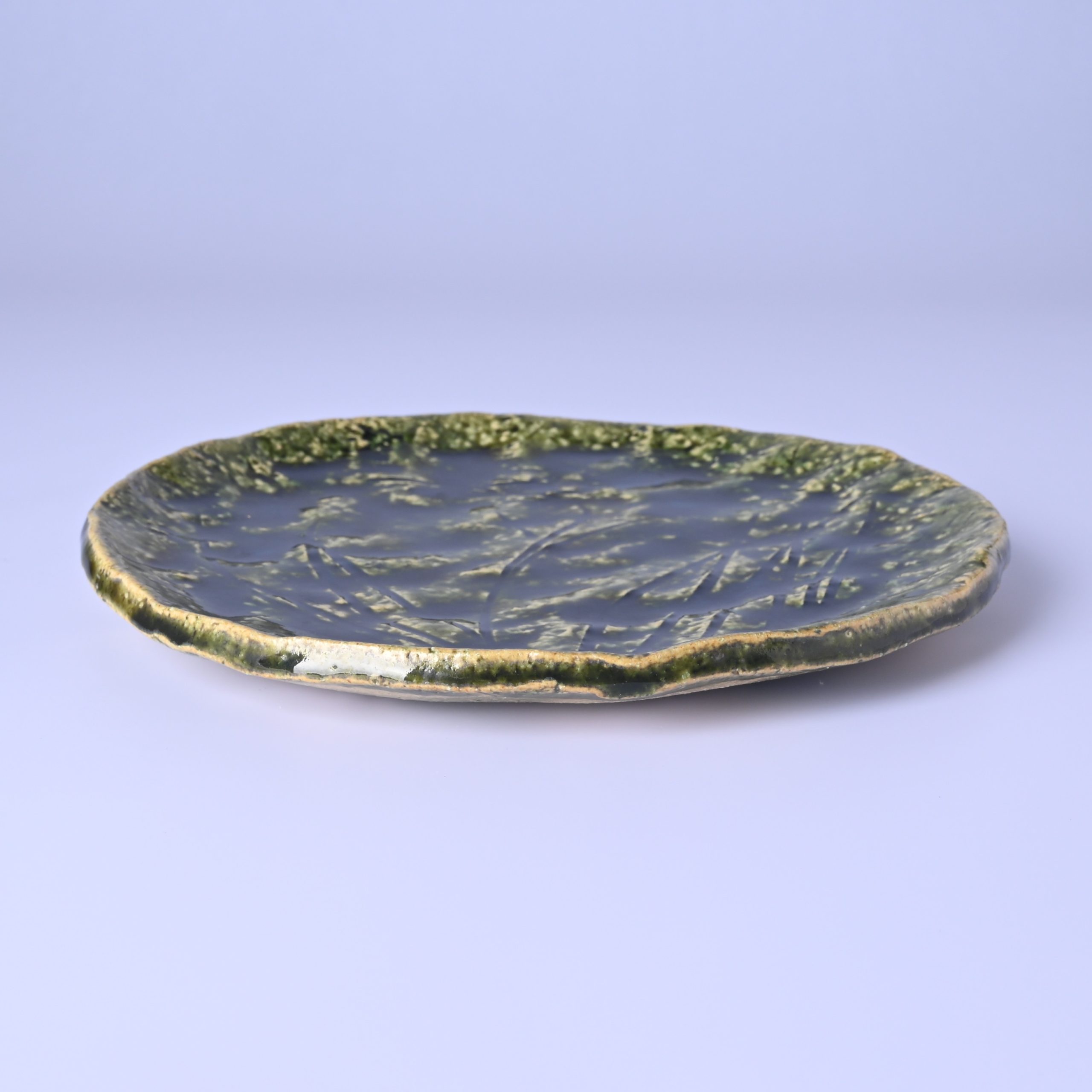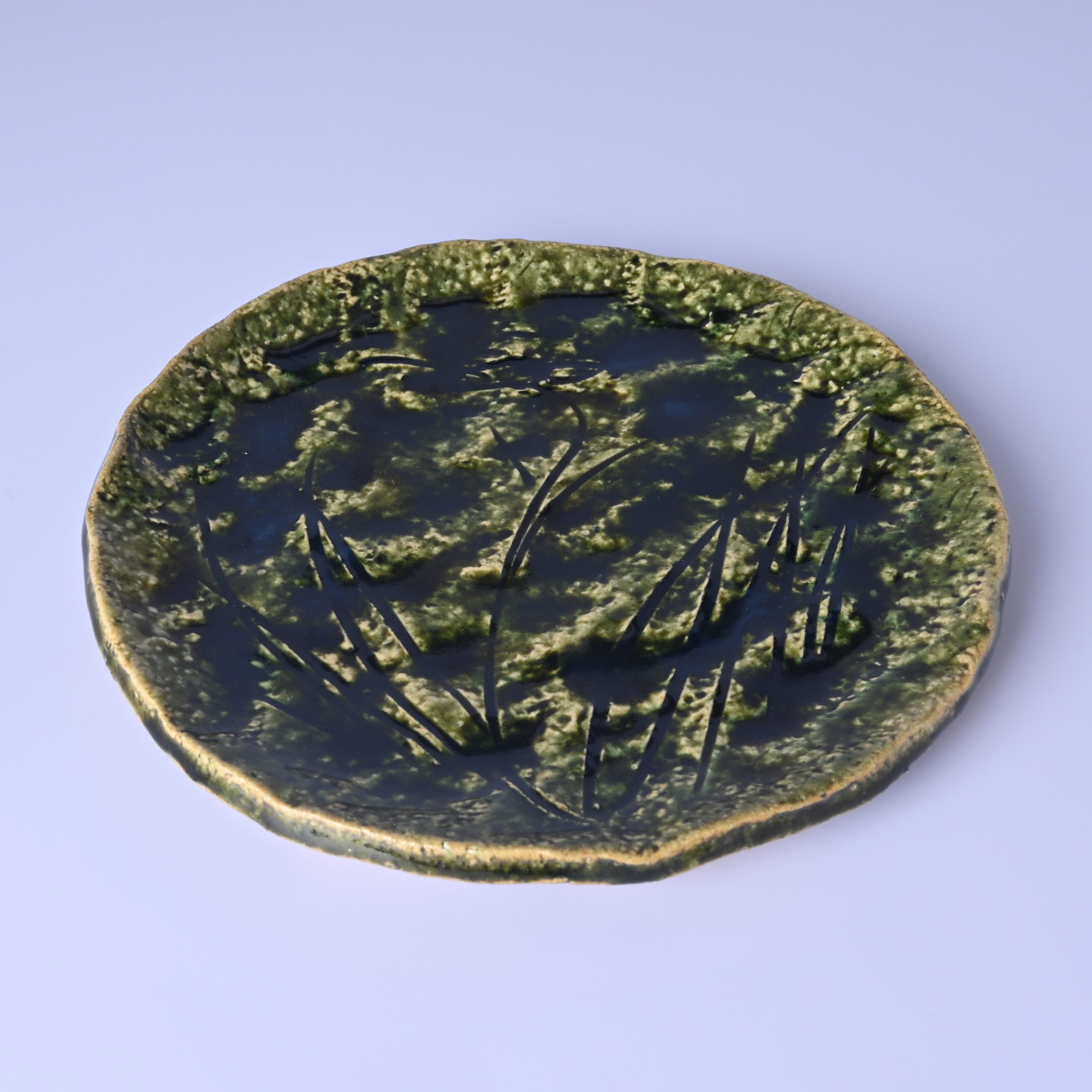 山口真人 織部菖蒲文丸皿 [ym040]