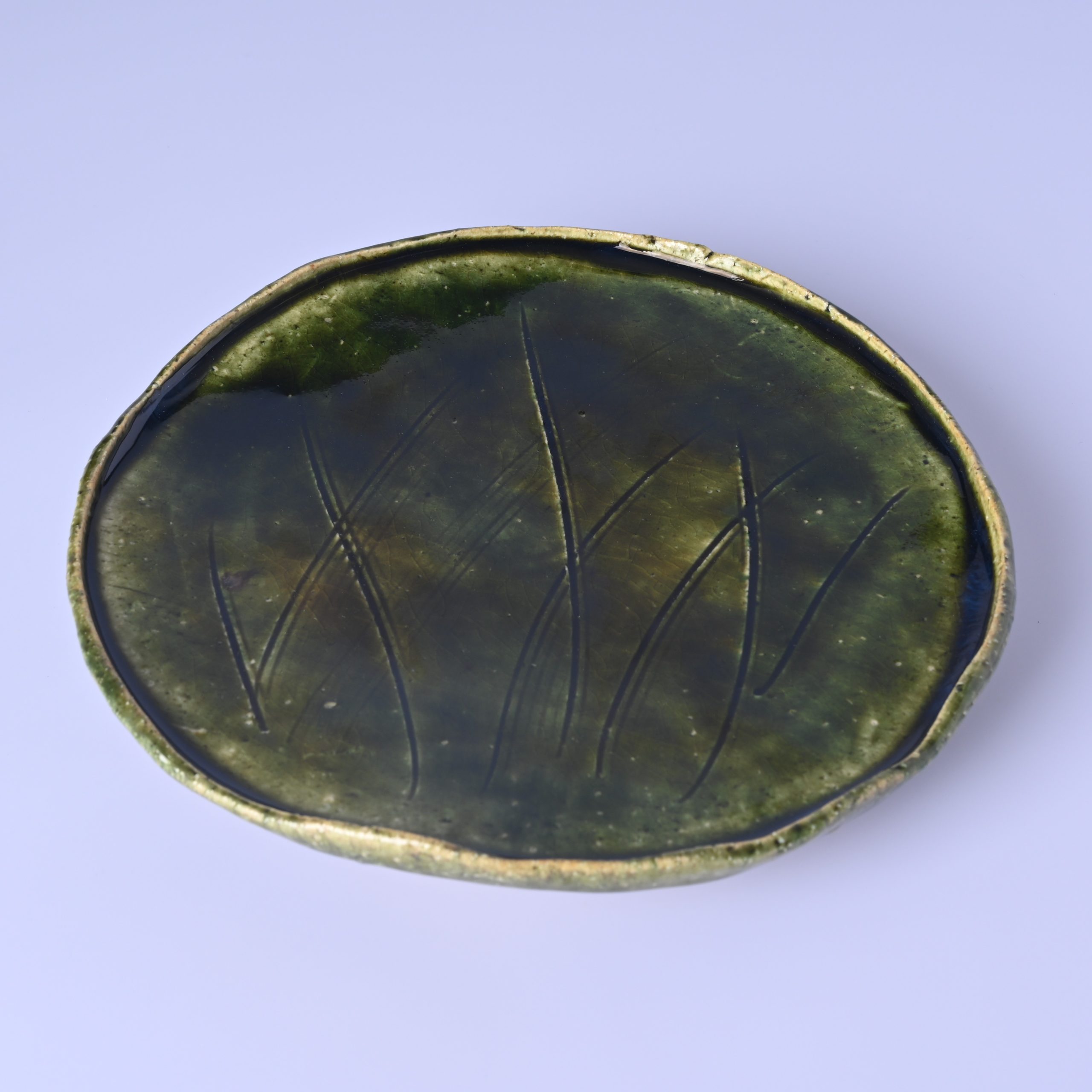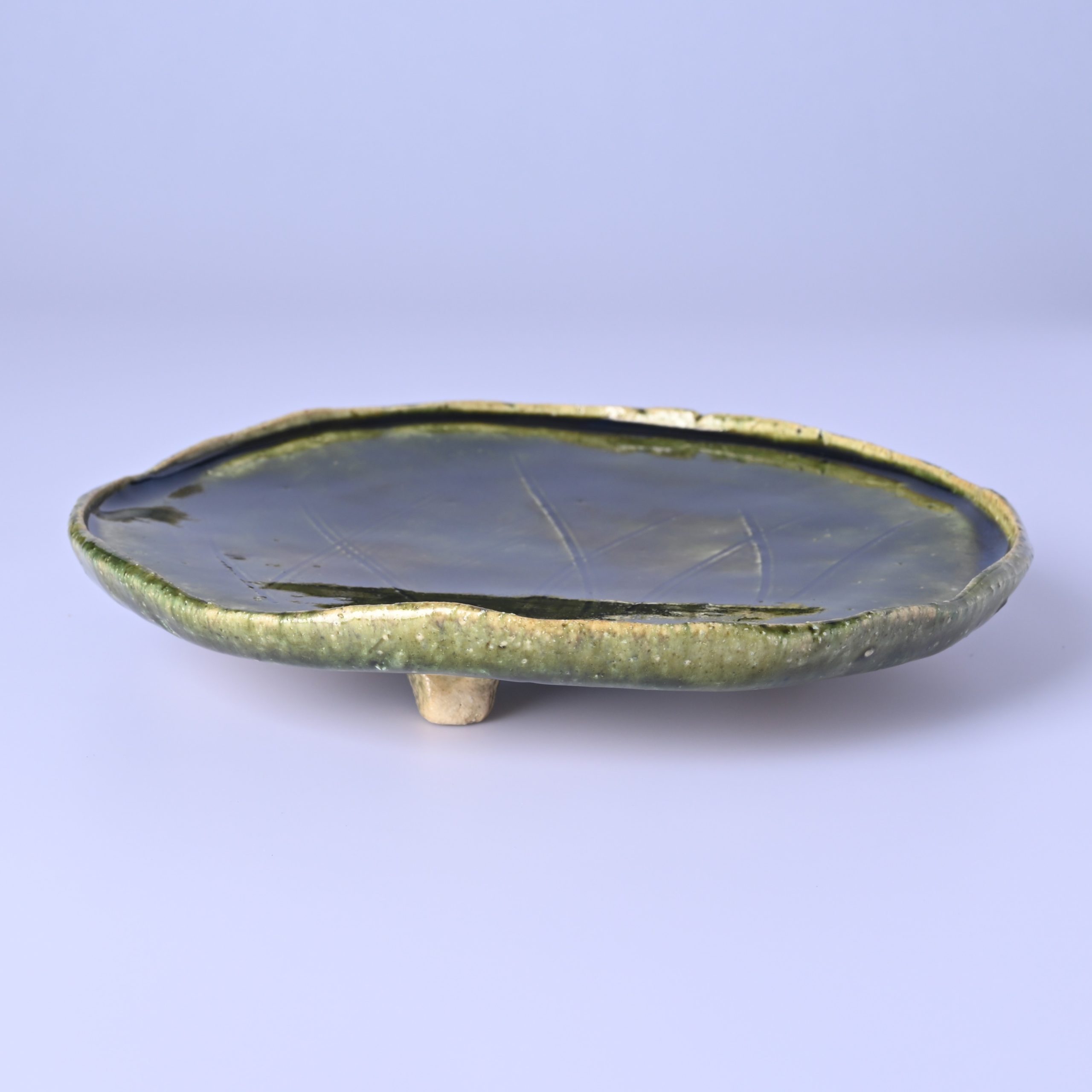 山口真人 織部草文足付丸皿 [ym057]