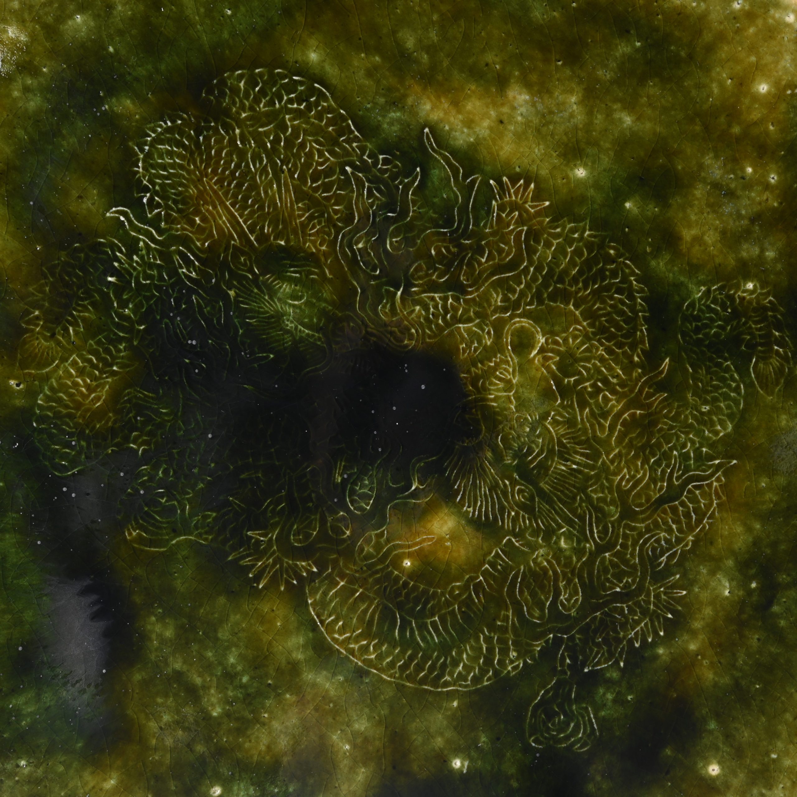 山口真人 織部龍図丸皿 [ym234]